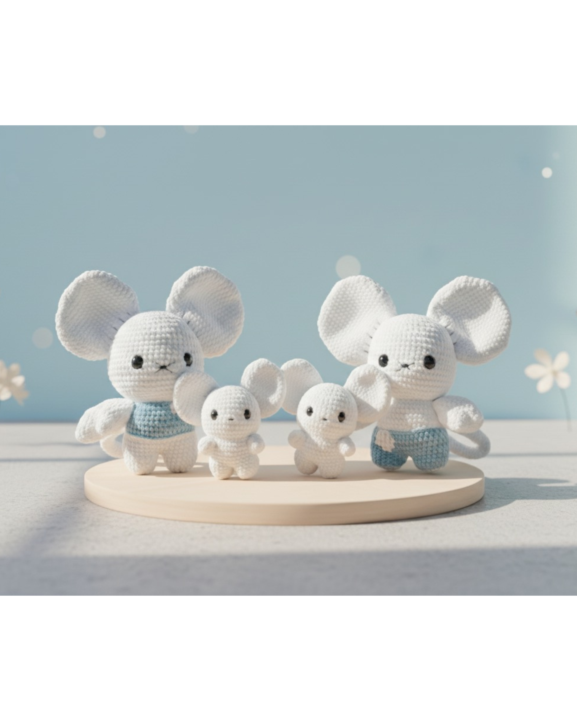 Una creación tejida a mano inspirada en uno de los personajes de Pokémon. Esta familia de ratoncitos está elaborada con estambre suave y relleno de alta calidad para que no se deforme ni pierda su forma con el tiempo.