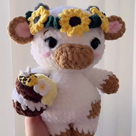 Directamente salida de un campo lleno de girasoles, Vaquita Dulce Miel es una explosión de ternura hecha amigurumi. Cada pieza está cuidadosamente tejida a mano con materiales de la más alta calidad, seleccionados para ofrecer una suavidad irresistible y una larga durabilidad.